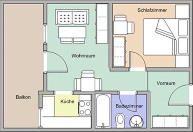 - Wohnschlafraum mit ausziehbarem Sofa (160 × 195 cm)